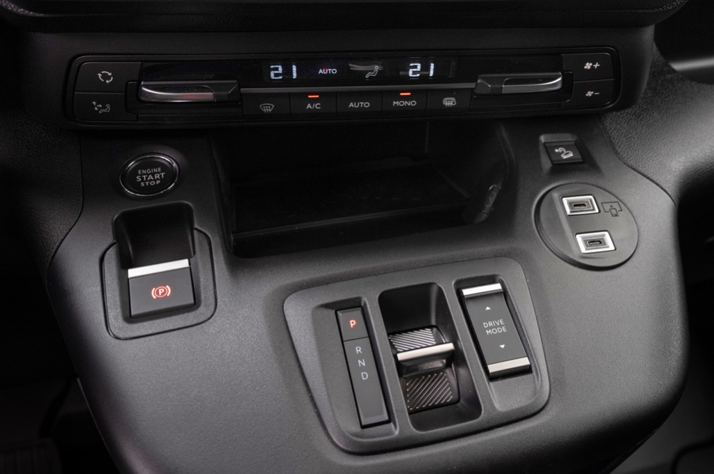 As the e-Berlingo is only available with Citroen’s higher spec trim grades; Enterprise Pro and Driver Pro, all models are fitted with a DAB radio with steering mounted controls, USB port and 8” touchscreen that’s both clear and intuitive to use. The tiny e-shifter – dubbed ë-Toggle – is mounted where the gearstick would normally be and has a pleasing, smooth motion as you switch between drive and reverse. Drivers can also engage B mode which triggers maximum regeneration. While B mode works decently enough, replenishing the battery when you lift off the accelerator it doesn’t deliver a true ‘one pedal’ driving experience.