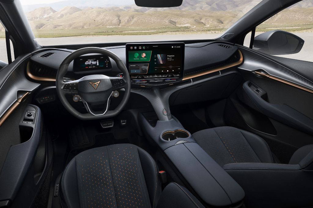 Inside the Tavascan is certainly a bit different to the ID.4 and even the Born, with more materials and a more stylised look. It’s also got Cupra’s trademark copper trim accents, which make a change from the usual silver and chrome.