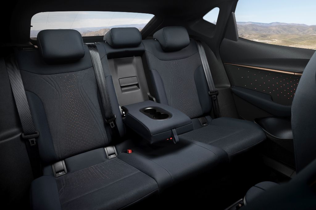 The Tavascan’s sporty bucket seats do a decent job of supporting the driver and passenger, and there is a plenty of space in the front for both people and their stuff. The central spine might add an interest feature, but in gets in the way of storage though.