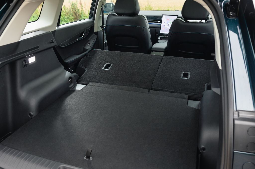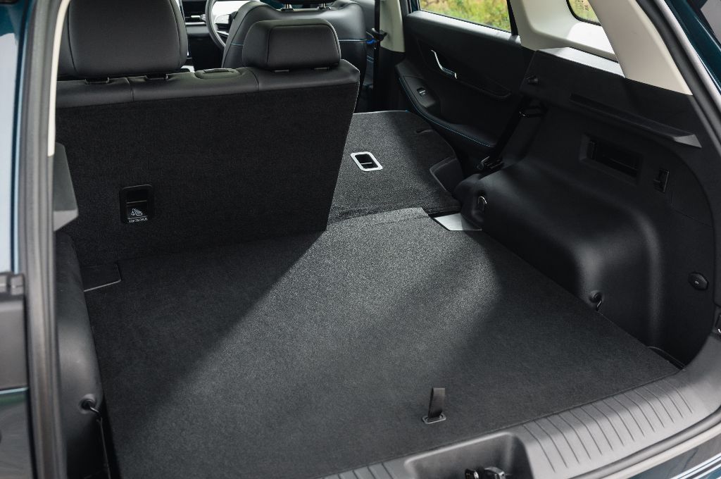 A 480-litre boot space is one of the roomiest you’ll find in this class; that’s more space than in the Kia EV3, and even the MG S5 EV. It’s bigger than the Renault 4 too, but can’t the Puma (not many cars can). It’s certainly a really useful boot, although it’s a shame that there’s not much versatility. No sliding seats or clever storage solutions. Just a big boot with 60/40 split rear seat backs that fold down to leave a smooth but sloping extended load bay.