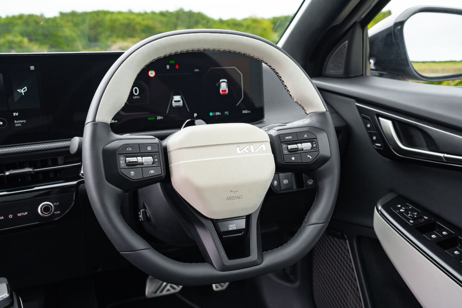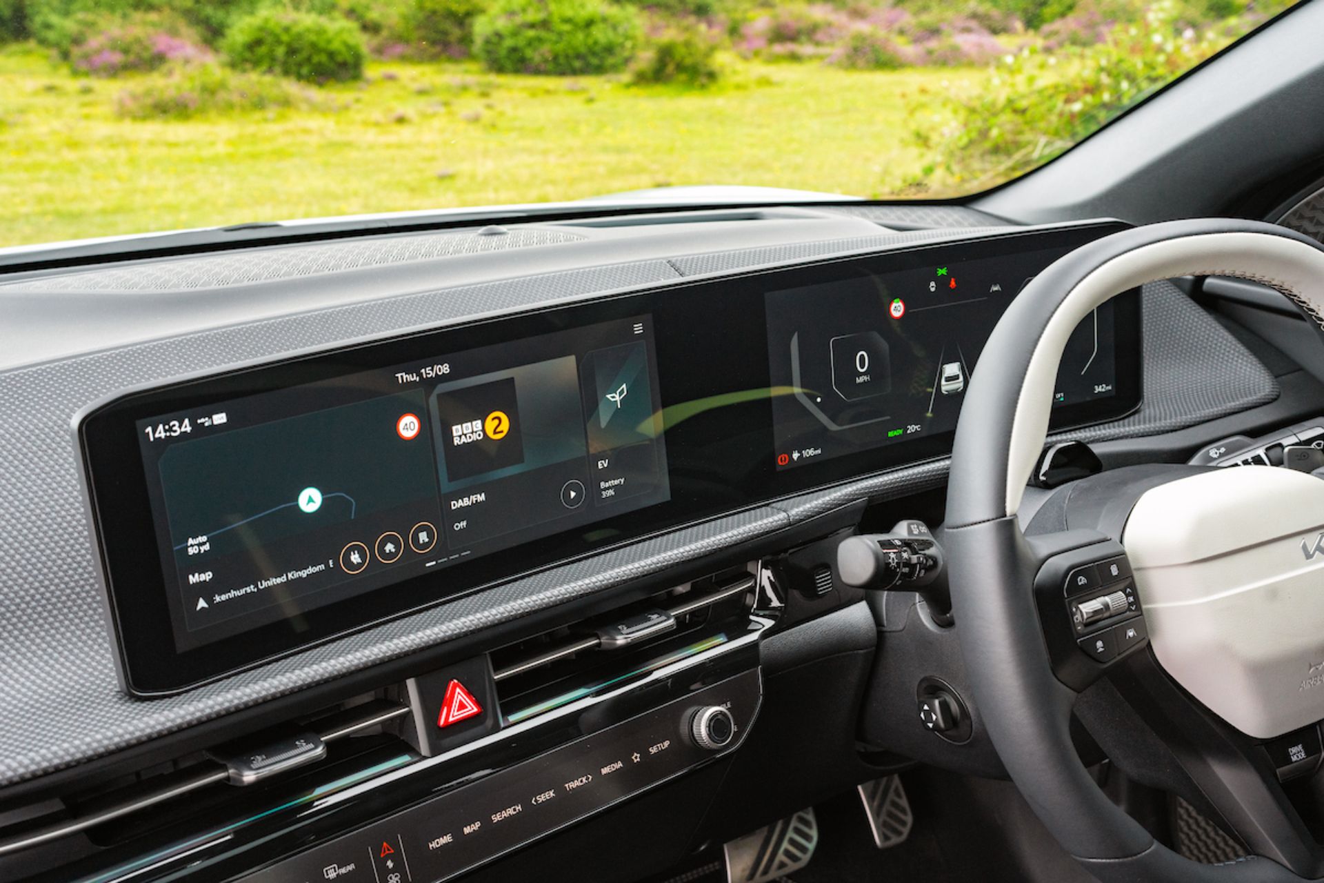 Kicking the range off is the base Air spec, available only with the entry RWD powertrain. It starts at £45,575 with your only real option being the colour – it’s stacked with equipment as standard, although you can't have the heat pump (which helps to improve efficiency and range in the winter). GT-Line models start from £48,575 and bring upgraded LED headlights and a more assertive styling kit on the outside and comfier front seats inside, as well as those external outlet power sockets and wireless phone charging. This is your first opportunity to get the 321bhp EV6 AWD, too, which is a further £3,500, starting at £52,075. You also have to go for GT-Line to be able to add that heat pump, although it's a pricey £950 option.