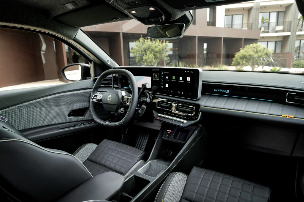 Up front in the Renault 4, it’s charming and well thought-out. The seats are comfy and have a decent range of movement, plus there’s electric lumbar adjustment that made a big difference to my creaky back on a fairly long route.