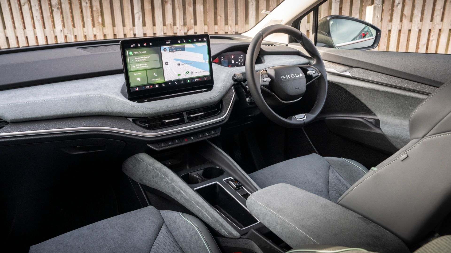 Inside, the Skoda Enyaq is very lovely. I’ve spent time recently in the Volkswagen ID.4 and Cupra Born, but I really do think that the Enyaq feels classier, and has better usability. It’s just a lovely place to spend time.