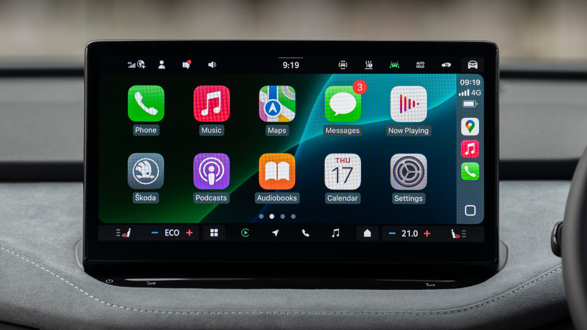 On the main screen there’s a new top bar that houses the controls you tend you use the most. I’m pleased to see that battery pre-heating is one of them because that makes a big difference to the charging speeds you’ll get at a public charger. Just press this when you’re getting close to the charger and the battery will be at the perfect temperature to make the most of the new, faster charging speeds that the Enyaq gets. More manufacturers need to do this, as a lot offer pre-heating only if you have the charger on the nav in the car's native system... But most of us probably use Apple CarPlay or Android Auto, right? So having a manual pre-heat button that's easy to prod when you know you're fifteen minutes or so away from your charging destination is a great feature.