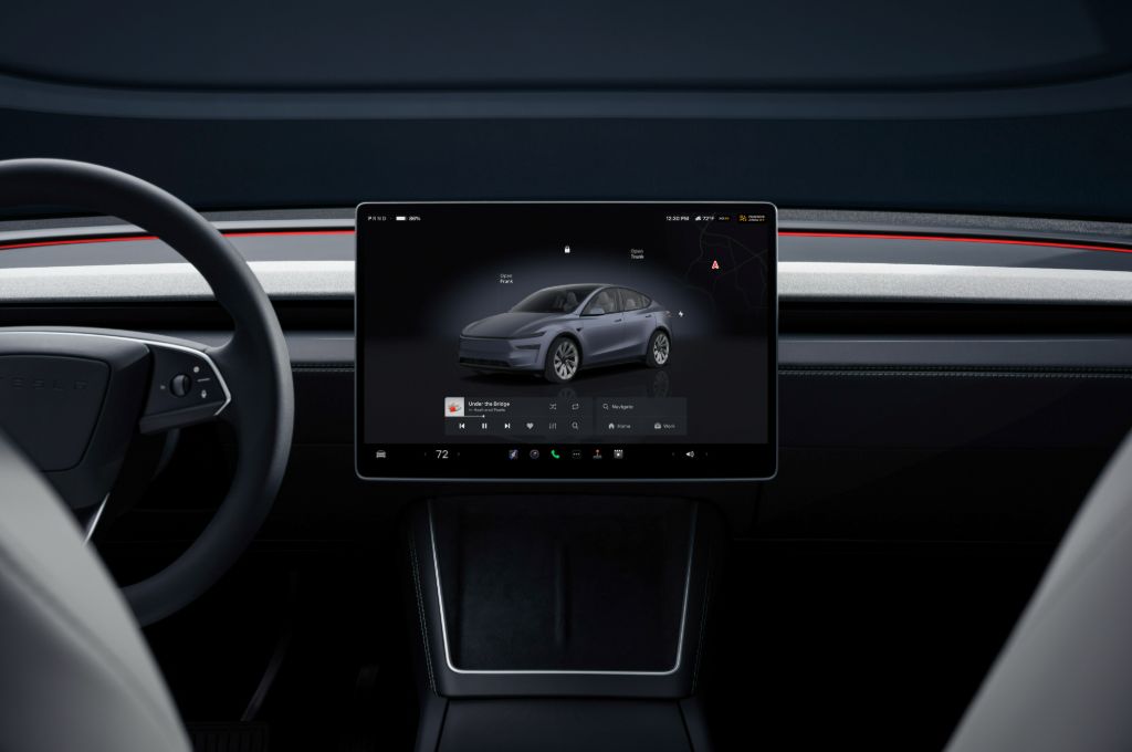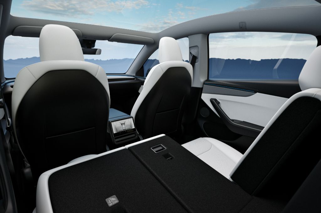 The rest of the Model Y interior is improved with better material finish and ambient lighting, while the glass also reflects 26% more of the sunlight to keep the interior cool in the summer and reduce glare. It's a smart, if minimalist place to be. I actually rather like the Model Y Standard, which gets leatherette and textile upholstery, some open storage where the central cubby is between the front seats in the other models, and no screen in the back seats. It's straightforward, but I actually like the simple finish.