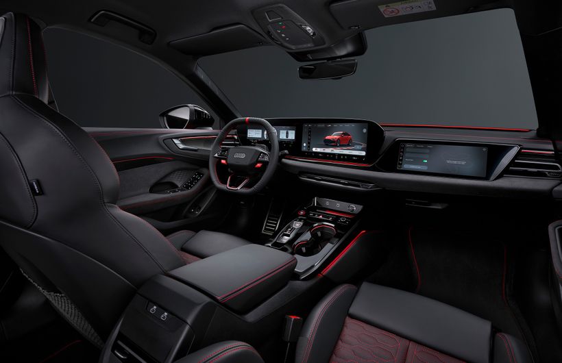 All very moody inside the new Audi RS5, but there are plenty of screens to keep you distracted on the move too