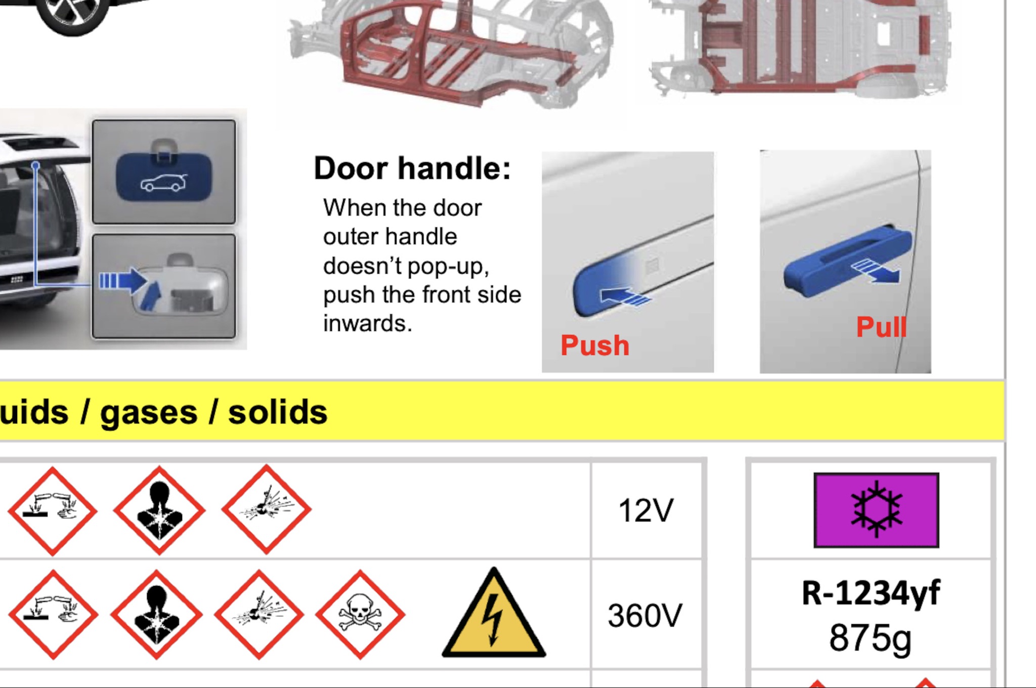 Hyundai has accident sheets on its website that are accessible to emergency services and give detailed information on each of its cars – it gives information on how to open the doors of its Ioniq 9 by pushing the handles out if they don’t pop out readily.