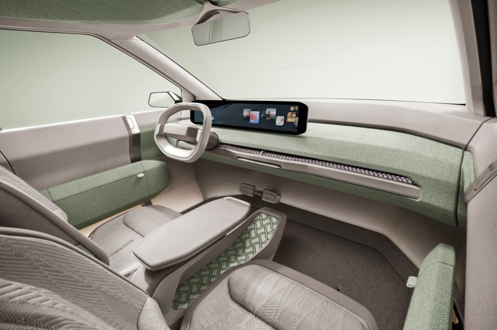 For the Concept EV3, the designers used natural – as opposed to carbon – fibre structures to deliver a lightweight, slimmer seat design. For the seat covers, the CMF team applied 3D Knit technology. This process not only results in a 3D effect with a soft surface but also delivers class-leading efficiency with reduced stitching and joins, plus zero waste material.