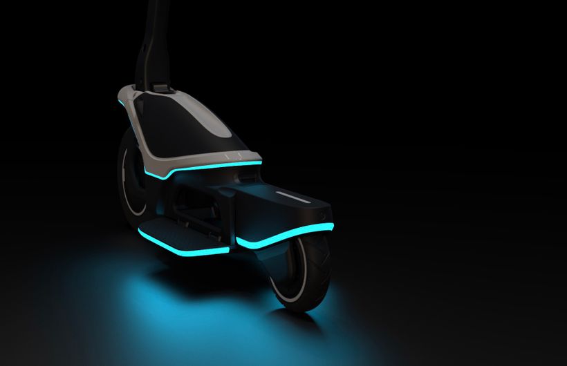 Perimeter lighting is powered by AI Other unique characteristics of the Hilo One are haptic feedback and audio signals that integrate with the illumination system. The scooter can also fold for storage at home, in the office, or in a car.