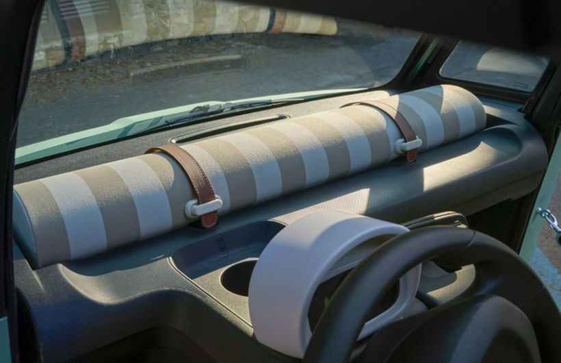 The Dolce Vita comes with door ropes and branded door sills as standard while the hard-top version has conventional doors and a roof blind. Customers can also add some rather unusual optional extras including a shower attachment, a dashboard-mounted fan and seat covers that double up as beach towels.