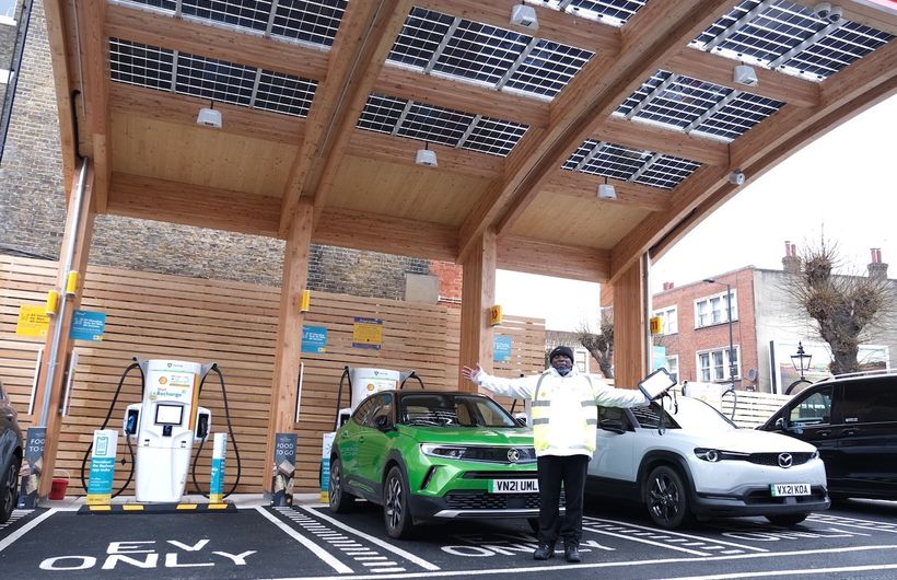 Clyde, Shell's new electric vehicle champion, is ready to welcome you at their Fulham charging station