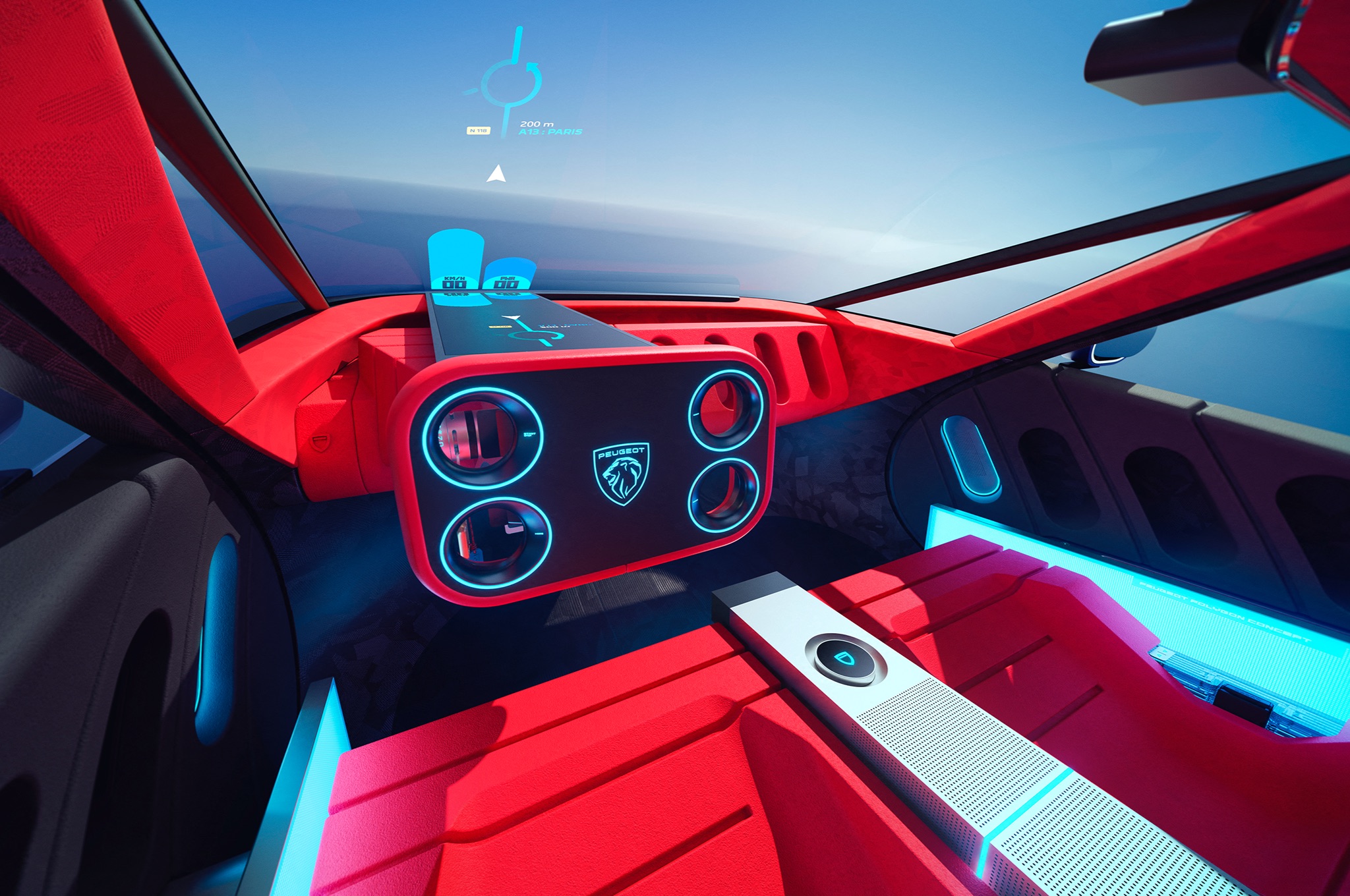 Peugeot's design chief Matthias Hossan says that the interior of the Polygon "completely reinvents" the interior of Peugeots – not just with the innovative steering, but also with the use of a head-up display that displays all of the dashboard and infotainment information on the windscreen rather than on big displays inside the car, freeing up space. You can also swap out parts of the interior like the seat fabrics depending on your mood, or if someone's thrown up on them perhaps.