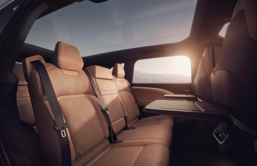 Space is key with a large SUV, and despite its lower roofline the gravity has loads of it and it feels very roomy inside with large glass windows letting in plenty of light. Rawlison explained that his design team has worked for 18 months on getting the seat configuration rights to make the most of the space available. The second row seats slide back and forth to give easy access to the third row and they have tables that fold out from the seats in front, while the back two rows of seats fold flat to give a massive load area which is large enough to carry surfboards or a mountain bike. Round at the front there’s a huge frunk that doubles up as a comfortable seat for a couple of people to sit in when you’re parked up.