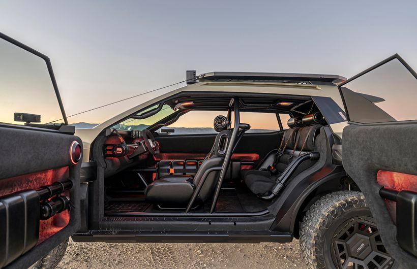 Some of our favourite features from the Crater concept include removable wing mirrors that double as both cameras and torches, a BYOD or “bring your own device” approach to the infotainment that has the driver plugging in their own phone to the dashboard very much like an entry level Dacia, and a rescue hook that doubles as a bottle opener while you wait for someone with a bit of rope to come and save you.