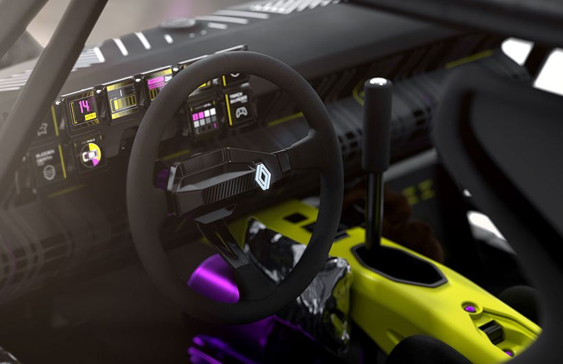 In terms of design, the TURBO 3E is 2.02 metres wide (25 cm more than its predecessor), 4.0 metres long and 1.32 metres high. The large air inlets on the front bumper cool the motor and add downforce. Being a concept car, the TURBO 3E also delivers its fair share of nonsense. There are pink, blue and yellow LED strips at the front and rear, which flash when the car drifts, adding when Renault describes as a 1980s and 1990s videogame vibe. Retro videogames also provided the inspiration for the camouflage stickers adorning the body. Lastly, the Plexiglass windows are pink and a sticker reading “La vie en rose” on the rear left window.
