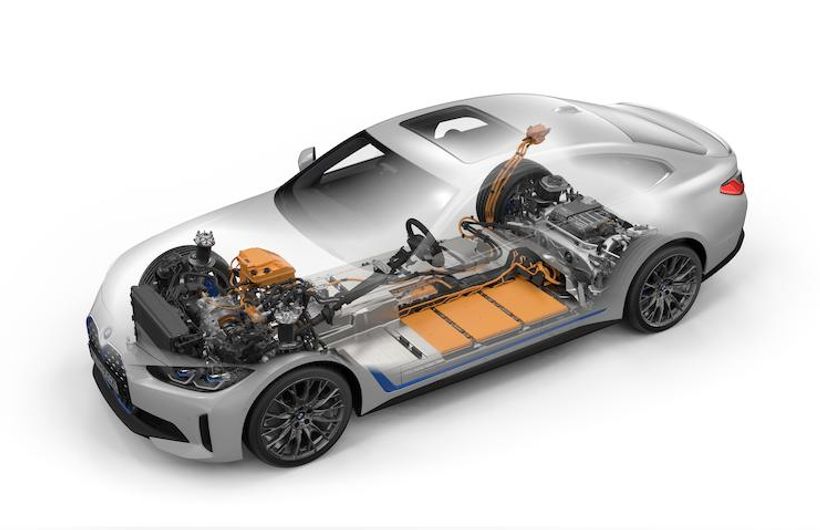 The BMW i4 is based on a flexible structural architecture which was conceived from the outset to be used with a purely electric drive system. This allowed the engineers to push the wheels out into the corners of the car, creating extra stability, refinement and creating more room for passengers.