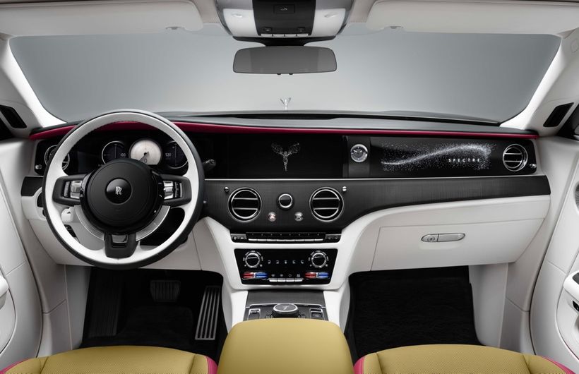 Inside the Spectre is as luxurious as you’d expect and includes an ‘Illuminated Fascia’. It incorporates the Spectre nameplate surrounded by a cluster of over 5,500 stars on the passenger side of the dashboard. The illuminations are invisible when the car is not in operation.