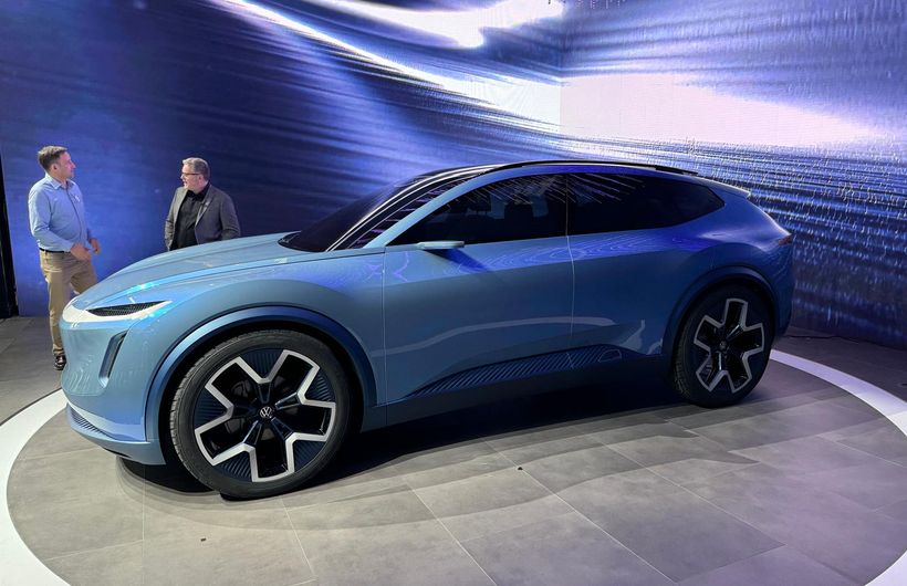 The sleek, five-metre-long ID.CODE looks more like a GT than an outright SUV, with hints of Volkswagen’s legendary Scirocco coupé at the front and the back.