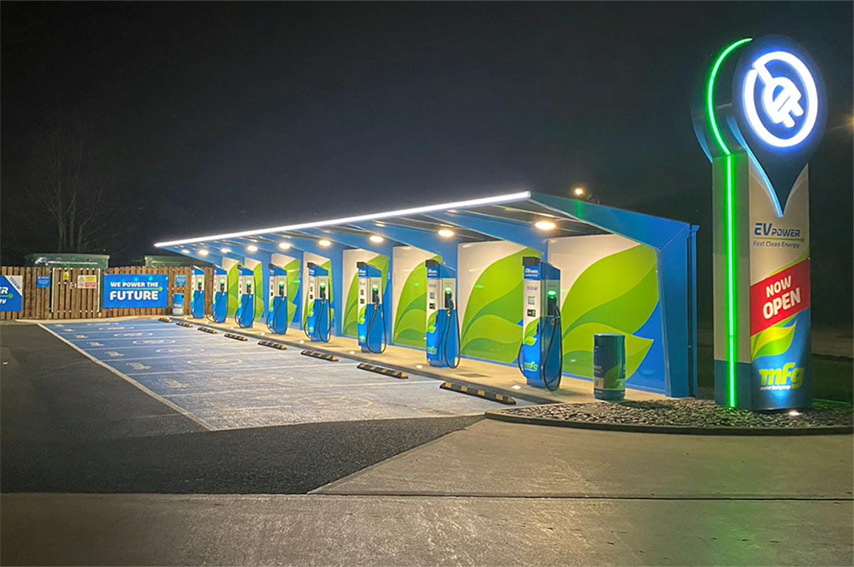 EV Power is the ultra-rapid charging network from MFG, or Motor Fuel Group, which operates fuel filling stations across the country. Its hubs are built on the same sites as existing fuel forecourts, offering between four and eight ultra-rapid chargers per site. These are 150kW or 350kW units, capable of the fastest charging times around.