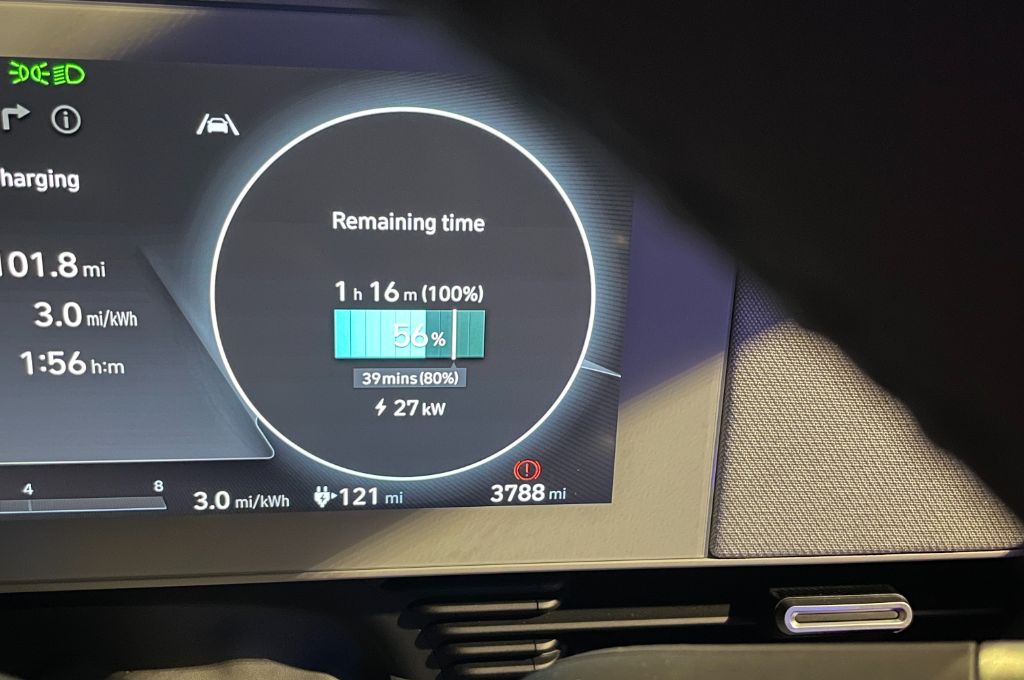 Downsides? You can’t manually press a button and start the process. You have to use the car’s inbuilt navigation to select a charger as your destination. There are two issues here. The first is that the Hyundai database isn’t great. Sites that went live more than a year ago still aren’t on there, which is a pain. Secondly, in normal operation, Hyundai doesn’t allow you to use the in-built nav at the same time as Google Maps on CarPlay (or Android Auto). So you’re stuck with the inbuilt nav, which is ugly, clunky to set up and feels like a system from 20 years ago. For a brief period, I found a way to use both simultaneously and was delighted to have head-up direction displays AND Google maps on the main screen. The next time I tried to perform the same trick, the car was having none of it and I was back to choosing one or the other. There is, apparently, a workaround that involves putting the phone into airplane mode and then taking it off, but to be honest, I’m past caring.
