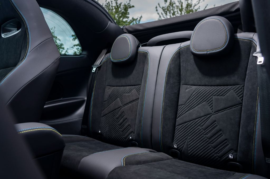 To differentiate the Abarth 500e from the standard 500e, Fiat has added new sports seats that come with an integrated headrest and raised side bolsters. Clearly intended to give off a motorsport vibe, they’re comfortable and do the job of making the Abarth feel a sportier offering. Accessing the rear is a little more cumbersome and comes with the added disadvantage of having to reset your driving position every time.