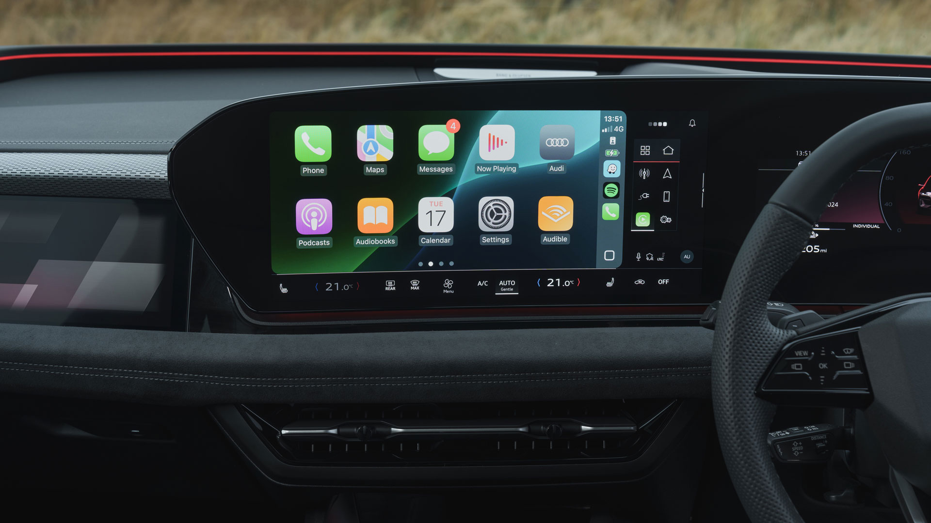 I am being picky, though; this latest version of Audi’s MMI interface is easy to use once you’ve familiarised yourself with it, and permanent shortcut buttons make it easy to hop between functions on the infotainment. You get wireless Apple CarPlay and Android Auto, too, as well as over-the-air software updates.