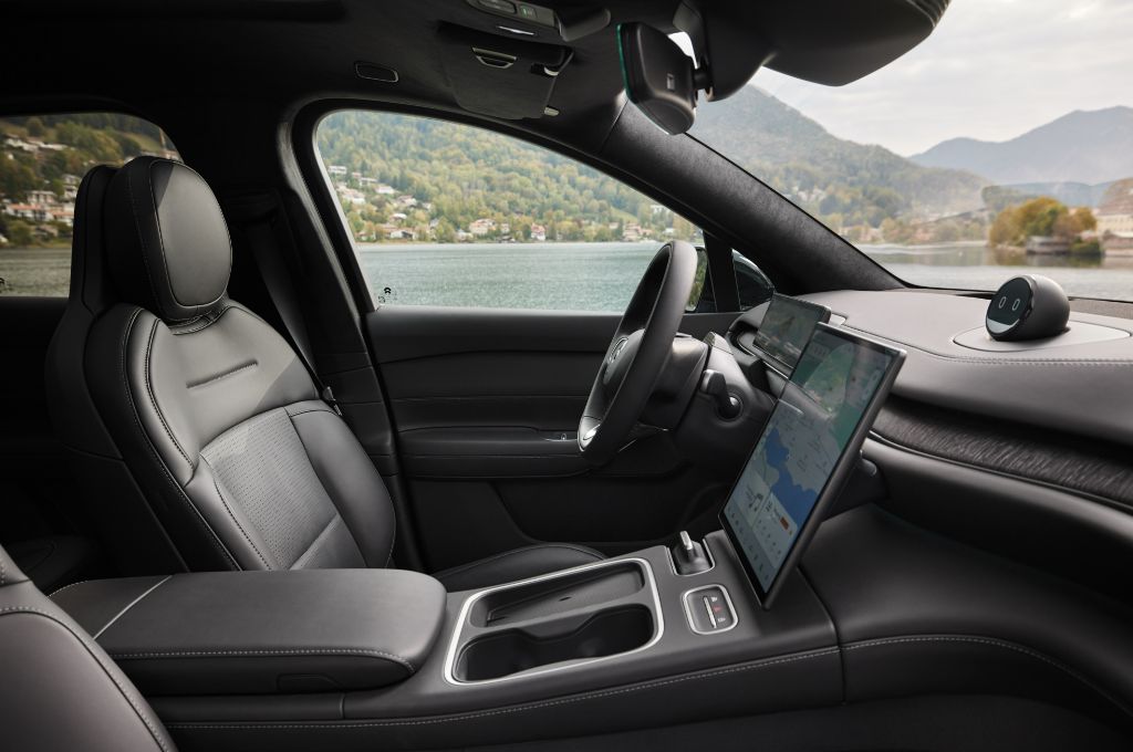 Square in shape, the 12.8-inch touchscreen happily doesn’t dominate the interior like some such as the vast portrait affair in the Ford Mustang Mach-E, but it isn’t all good news. Many features require two or three prods or plenty of finger scrolling to reach them which takes some getting used to, and if you spend too long staring at the screen the car tells you to ‘pay attention’ to the road.
