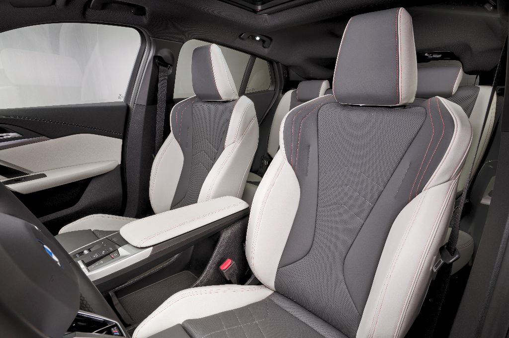 The iX2 is a really smart place to be up front, too. The driving position is good, with sports seats that are firm but good at keeping you in place, and everything feels classy – you can even get snazzy two-tone black-and white leatherette, which looks kind of cool but also a bit like it’s been upholstered in dairy cows.