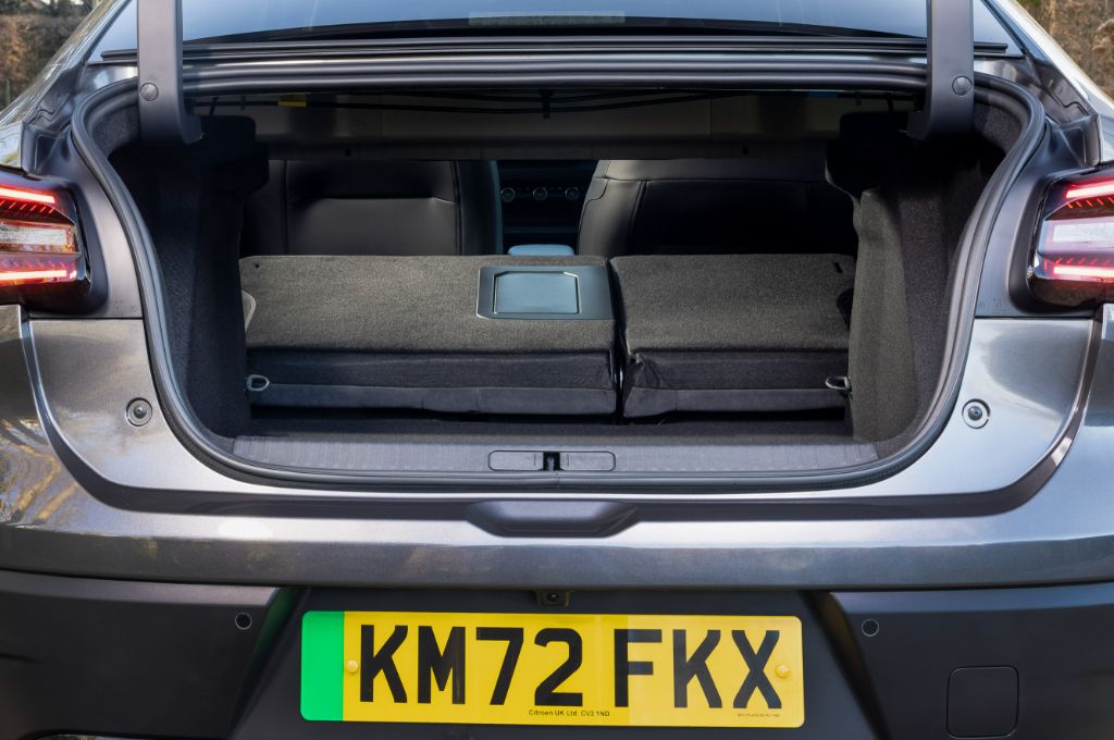 That boot is accessed via a traditional saloon opening – in other words, the e-C4 X is a four-door car with a separate boot, and not a five-door car with a hatchback tailgate. That makes it rather unusual in the UK as Brits haven’t been fans of four-door saloons (other than premium executive cars like the BMW 3 Series) for a long time – it’s a very southern European, middle-Eastern and South American kind of thing. While Citroen has worked hard at integrating a large rump on the end and adding a more swoopy roofline, it’s a challenging looking car, we feel, and won’t be purchased because of its looks but rather the extra space that’s been created because of the body alterations.