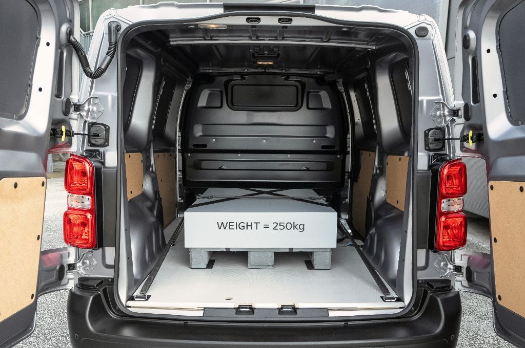 Choice isn’t always abundant in electric vans, but the E-Dispatch manages short- and long-wheelbase models as well as crew cabs with five or six seats. Despite the sizeable 75kWh battery, the E-Dispatch manages a payload of 1,002kg – a reasonable amount for a mid-sized van and around 200kg shy of its diesel equivalent. Load volume is the same as the diesel vans, with the largest long-wheelbase van capable of moving up to 6.6m3. Standard wheelbase vans can move lengths of up to 2512mm with the long wheelbase model adding 350mm, bringing its maximum length to 2862mm.