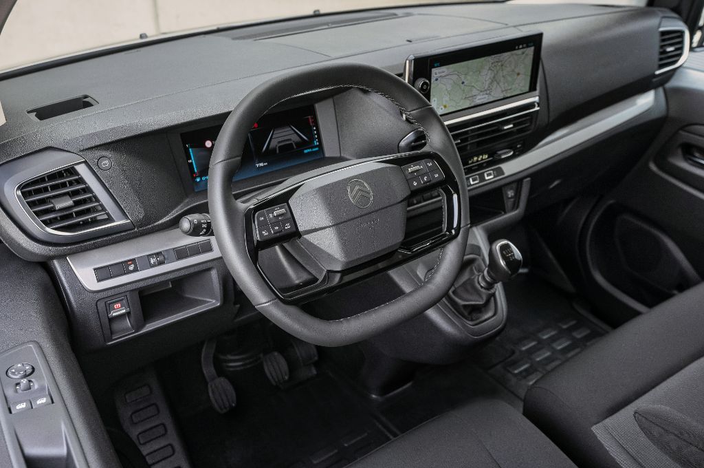 In a world where everyone is increasingly turning to AI to do their job for them, Citroen has jumped on the bandwagon with new ChatGPT integration for its voice assistant. It lets you make requests in natural sentences and is part of the 10-inch touchscreen and new 10-inch digital instrument cluster. Smart phone mirroring allows Apple CarPlay and Android Auto integration for a more seamless media hook-up that’s far better than the standard system. The E-Dispatch is packed with advanced driver assistance systems including automatic headlights, lane keeping, emergency braking and Intelligent Speed Assistance which recognises and advises on speed limits. There’s also the option of a digital rear-view mirror giving a clear view of the road behind as well as down the side of the vehicle. For the more adventurous (or those that want a fighter jet-like experience) there’s also a heads-up display option. Other features include blind spot warning, front parking sensors and a side detection system which recognises fixed objects like bollards.