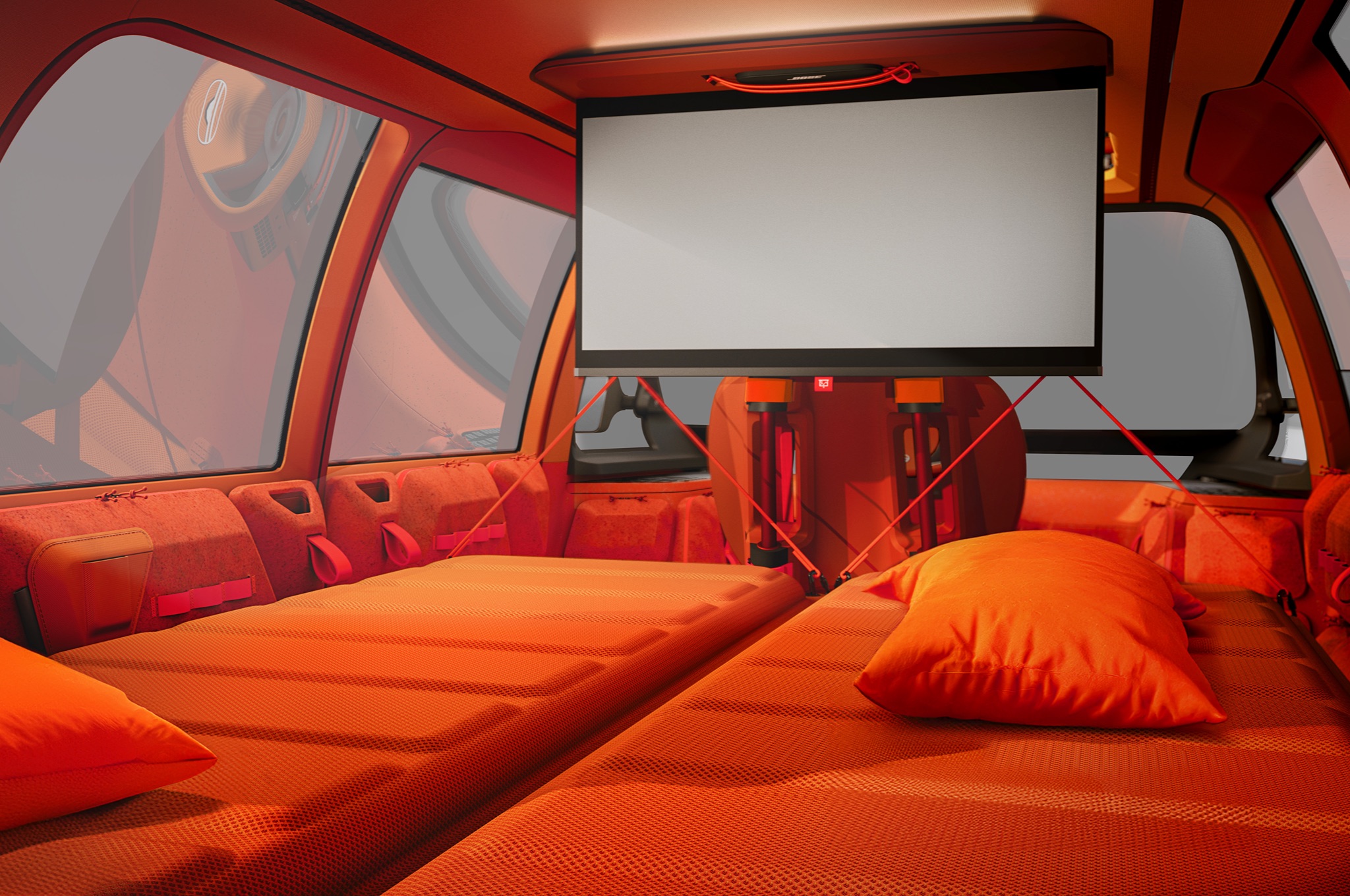 As for the boot, well - here's a fun fact for you: On average, a car spends nearly 95% of its time parked and unused. So Citroen wants to make sure that parked time is useful rather than wasted. This is where Decathlon’s clever, thoughtful touches really show. Tucked into the boot are two fold-out inflatable mattresses, made with the same 'Dropstitch' tech Decathlon uses for paddleboards. You pull them out, unfold, and the car’s built-in compressor inflates them. Then the cabin becomes a flat, proper two-person sleep space. Even the rear lights double as bedside lamps.