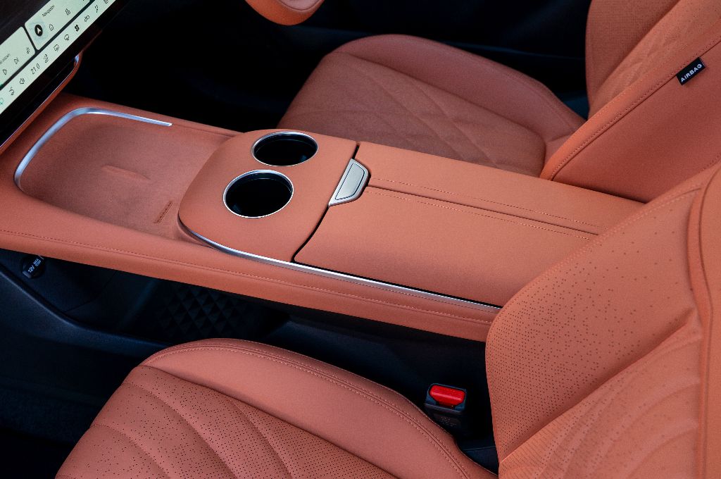Most functions are hidden in that screen — even the mirrors and wipers — but a shortcut menu helps, and the graphics are sharp. You also get over-the-air updates, wireless Apple CarPlay and Android Auto, plus a head-up display with augmented navigation so that you see floating arrows in front of the car pointing towards your next turn. And for a bit of fun, there’s ‘Nap mode’ for when you're charging and want to fully recline the seat, or ‘Bonfire mode’ serves up a crackling virtual fire that you can drag more virtual kindling onto, when you'll notice the cabin warm up and the seat heaters come on. Nice party trick to please the kids, eh?
