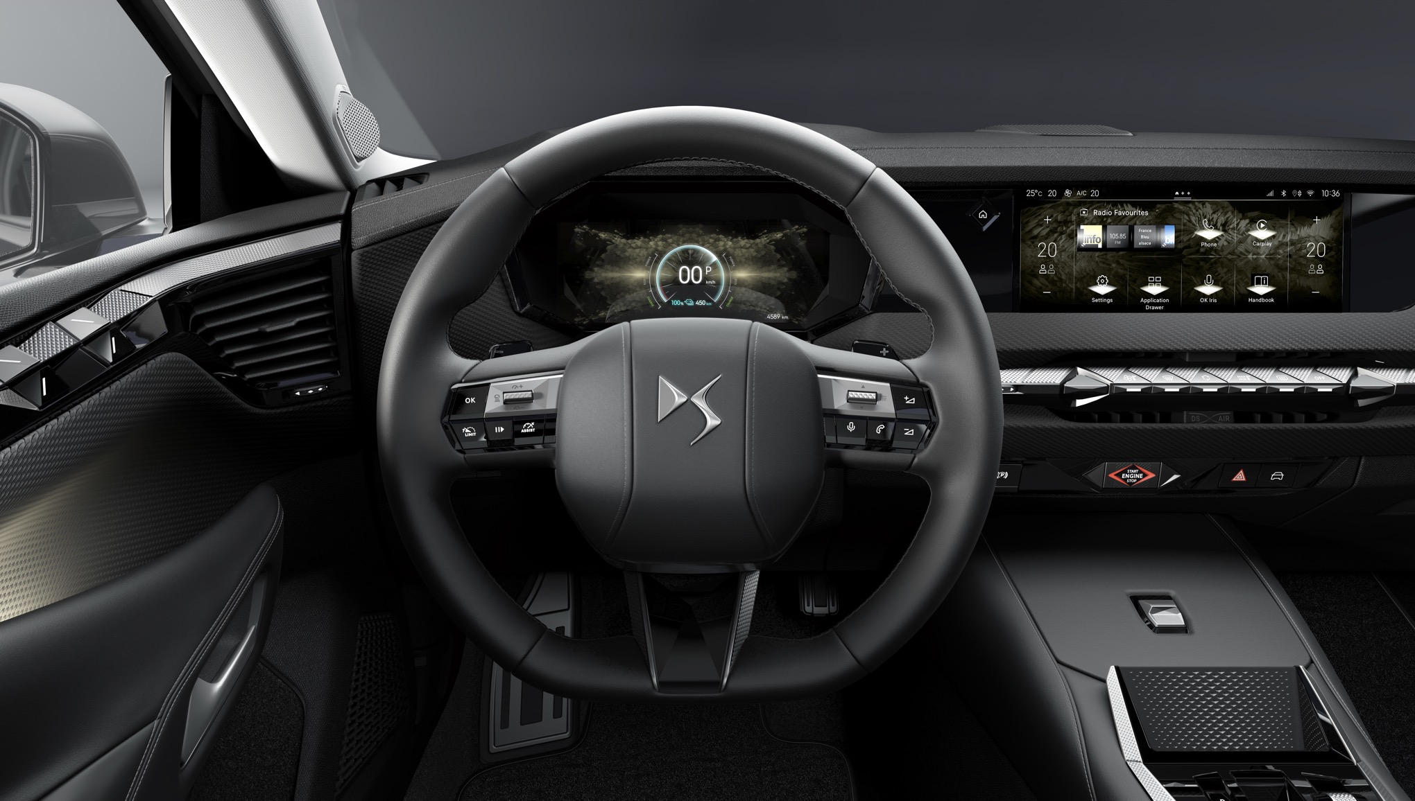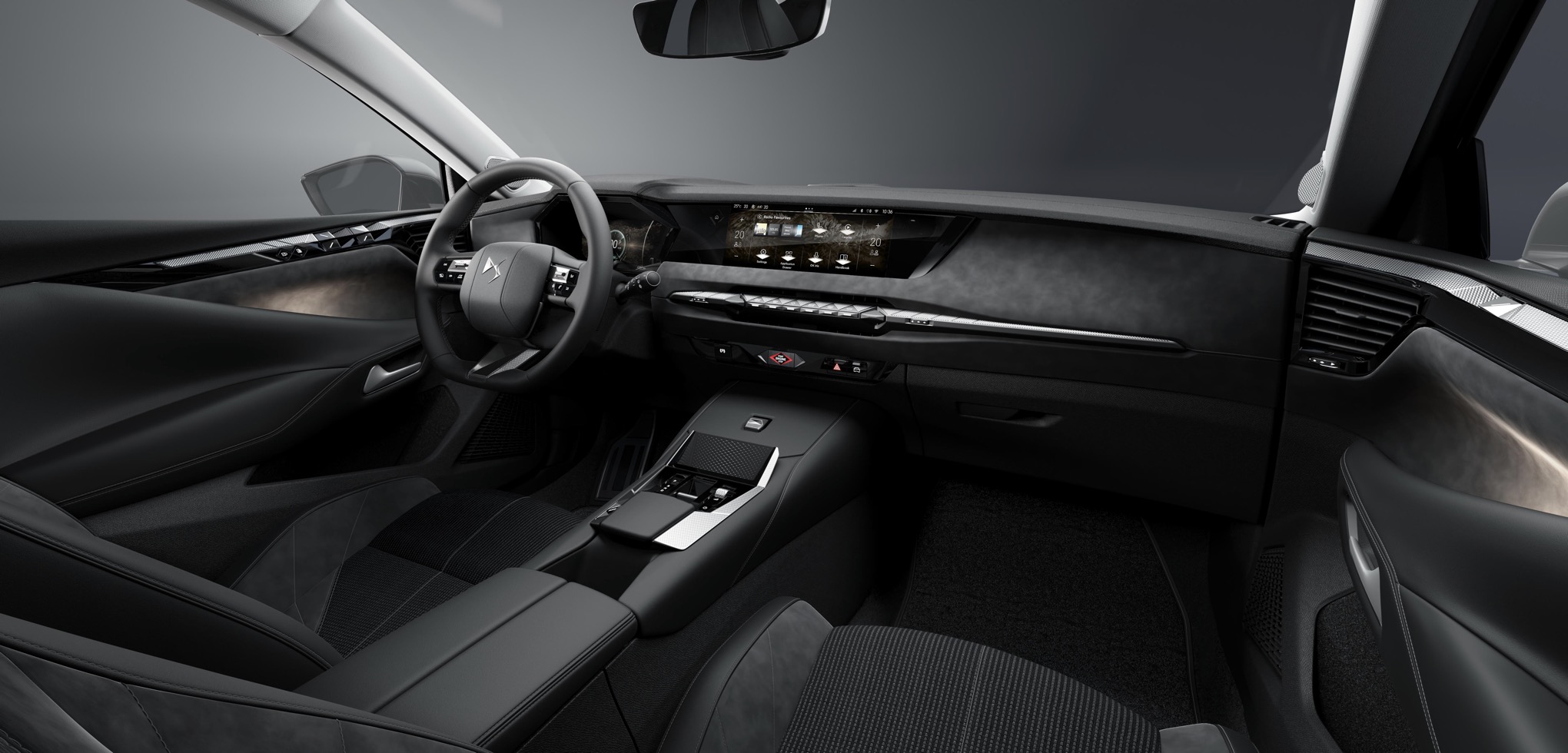 In front of the driver, there’s a new 10.25-inch high-definition digital instrument cluster with upgraded fonts to improve readability and – DS says “serenity”, I guess because it’s all quite calming, without bright colours. There is also a very good Head Up Display projecting info onto the screen in front of you and a second 10-inch screen allows you to navigate the infotainment system.