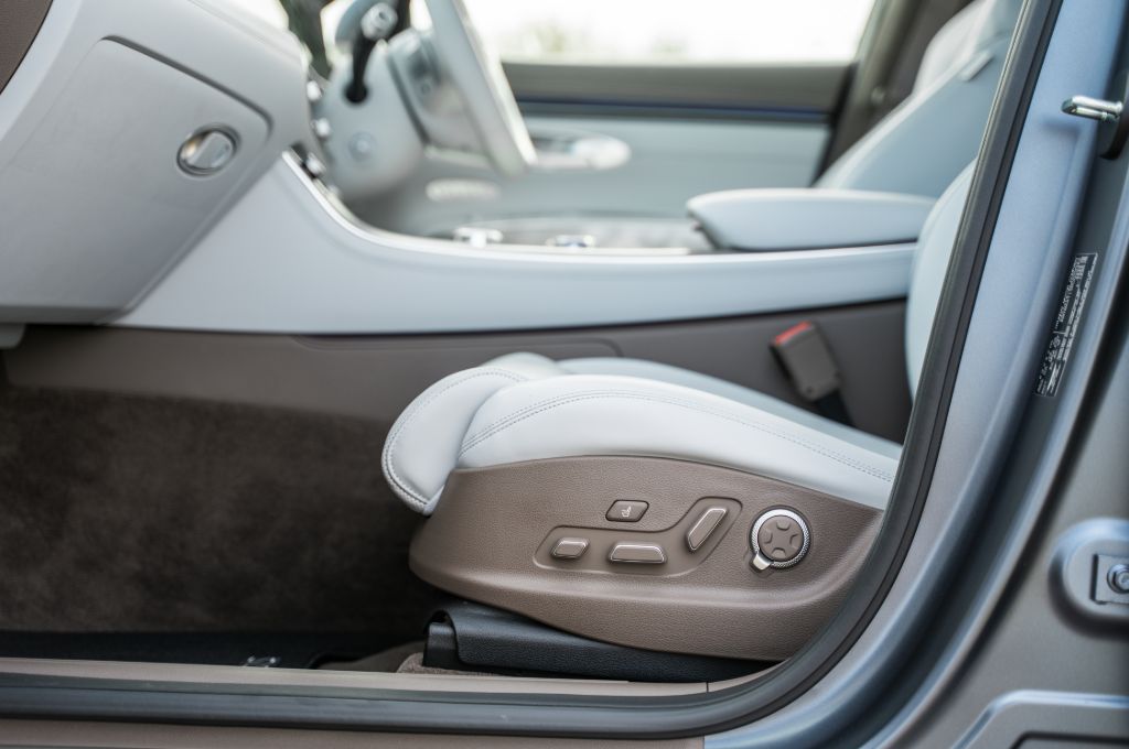 Tick another option box and you’ll end up with 18-way electrically adjustable seats with heating, ventilation and a massage function. These also feature Genesis’s smart posture assist, which subtly adjusts the seat and activates the massage function to stop your back going stiff on long journeys. The same option pack adds heated seats for your rear passengers, who can also benefit from their own third climate control zone.