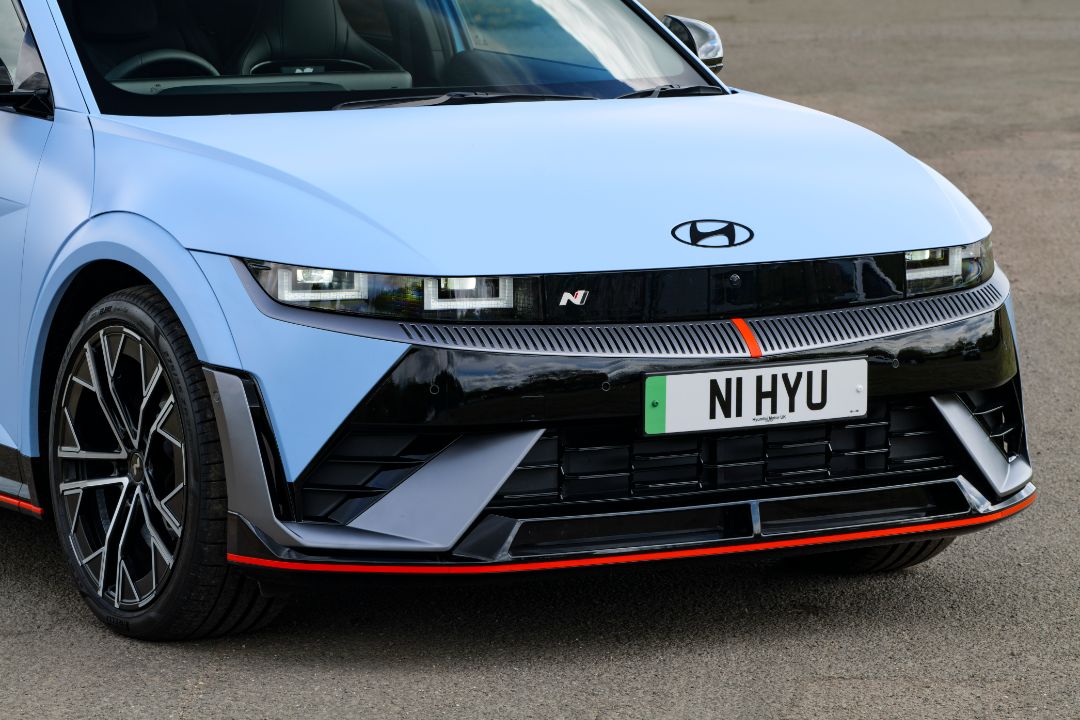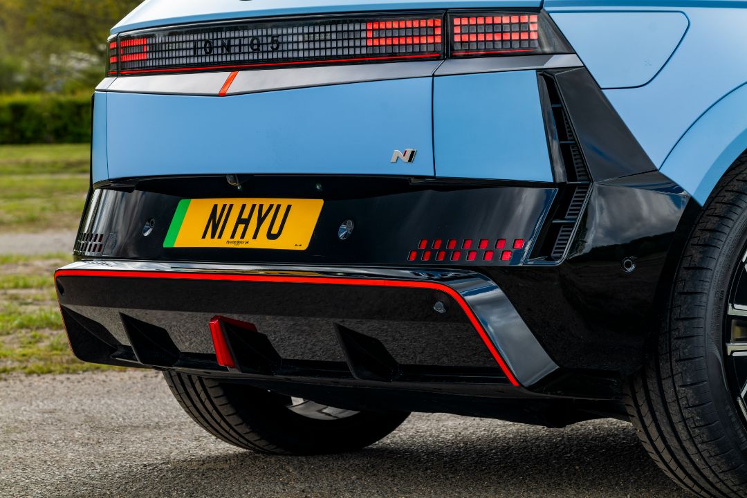 For a start, it looks way sportier than the standard car as it’s lower and wider, and the matt Performance Blue colour makes it look particularly fantastic in the metal, with with Hyundais trademark ‘N’ trim changed from red to a luminous orange for the performance electric cars.