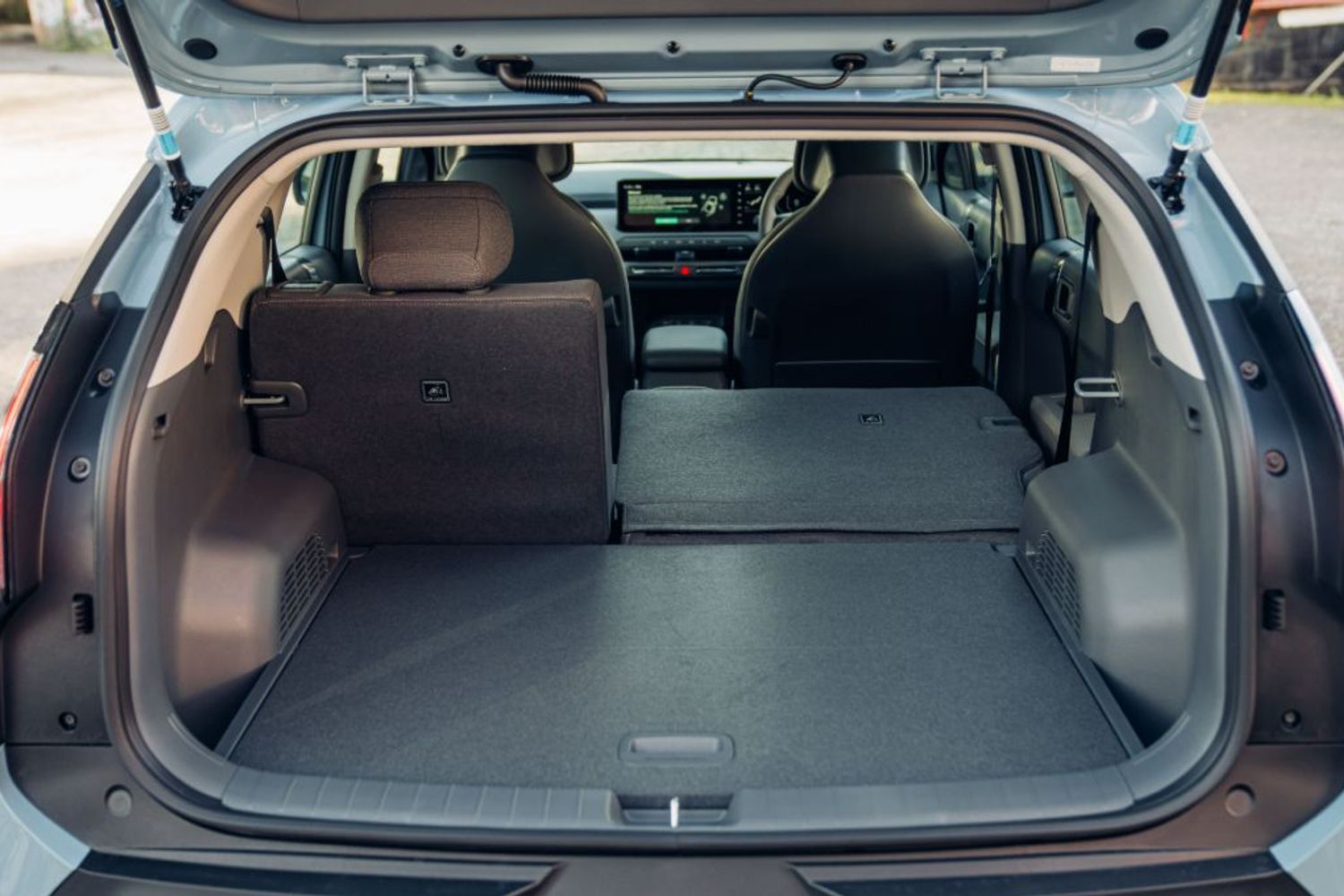 That’s not the only smart feature in the EV3; the centre armrest and storage area in the front is really clever. The top section slides out (on all but the Air models) so that you can turn it into a laptop table for getting your emails done while the car is charging; my large MacBook fitted on it comfortably and the table feels solid and robust, as does the rest of the interior. Underneath the centre console is a large storage area for your snacks and other gubbins, or it also makes a great handbag cubby. One of my favourite features from the EV9, the super-comfy mesh headrests, also make an appearance on the EV3. They look great but are also extremely comfortable and add to the 'lounge' vibe, helping to make it a really great place to spend time.