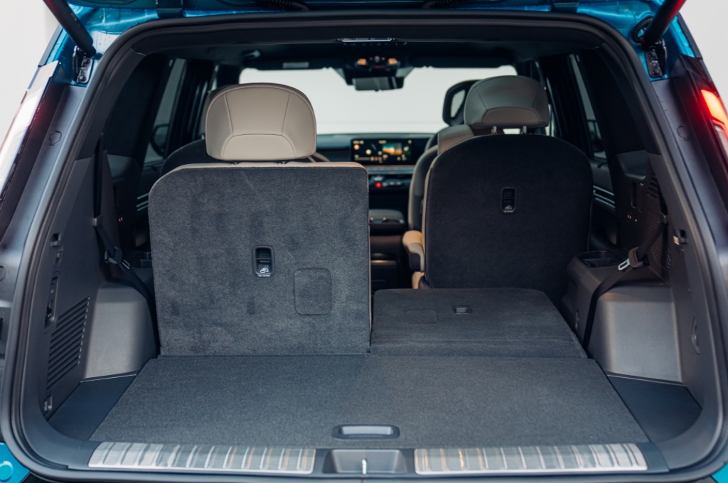 A big SUV with this much space inevitably needs a big battery. For now, the UK only gets one battery option – a 99.8kWh lithium-ion pack that has a usable capacity of 95kWh. It’s paired with a single motor, rear-wheel drive powertrain in the entry-level EV9 Air, while the rest of the lineup gets a more powerful, dual-motor, all-wheel drive setup.