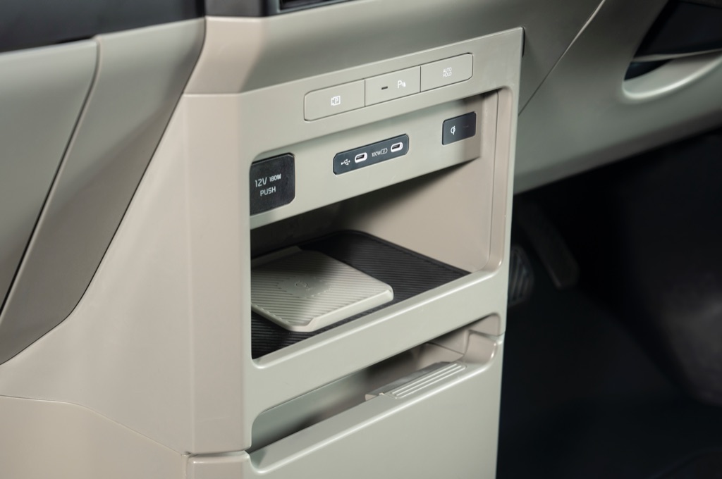 Kia’s also got an ‘AddGear’ modular system which is designed to let users customise and upgrade the PV5’s cabin after purchase. It has attachment points which can add extra cupholders, umbrella hooks, tool racks or storage bins wherever they are needed. This is factory fit rather than fitted afterwards.