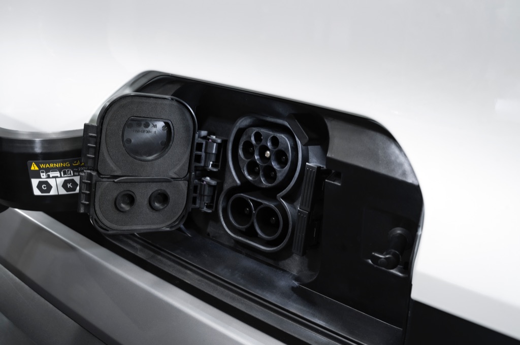 Your charging port is plonked at the front for easy access and the headlights are lower than you’d think, so you won’t be blinding people as you approach them. Good stuff. The bumpers at the front and rear are designed to be removed with ease, so if someone bumps it, you can replace those bits with less stress and expense, which should keep the insurance costs down. It's the same with the black, unpainted wheel arches and side sills - but they also echo the design of SUVs, too.