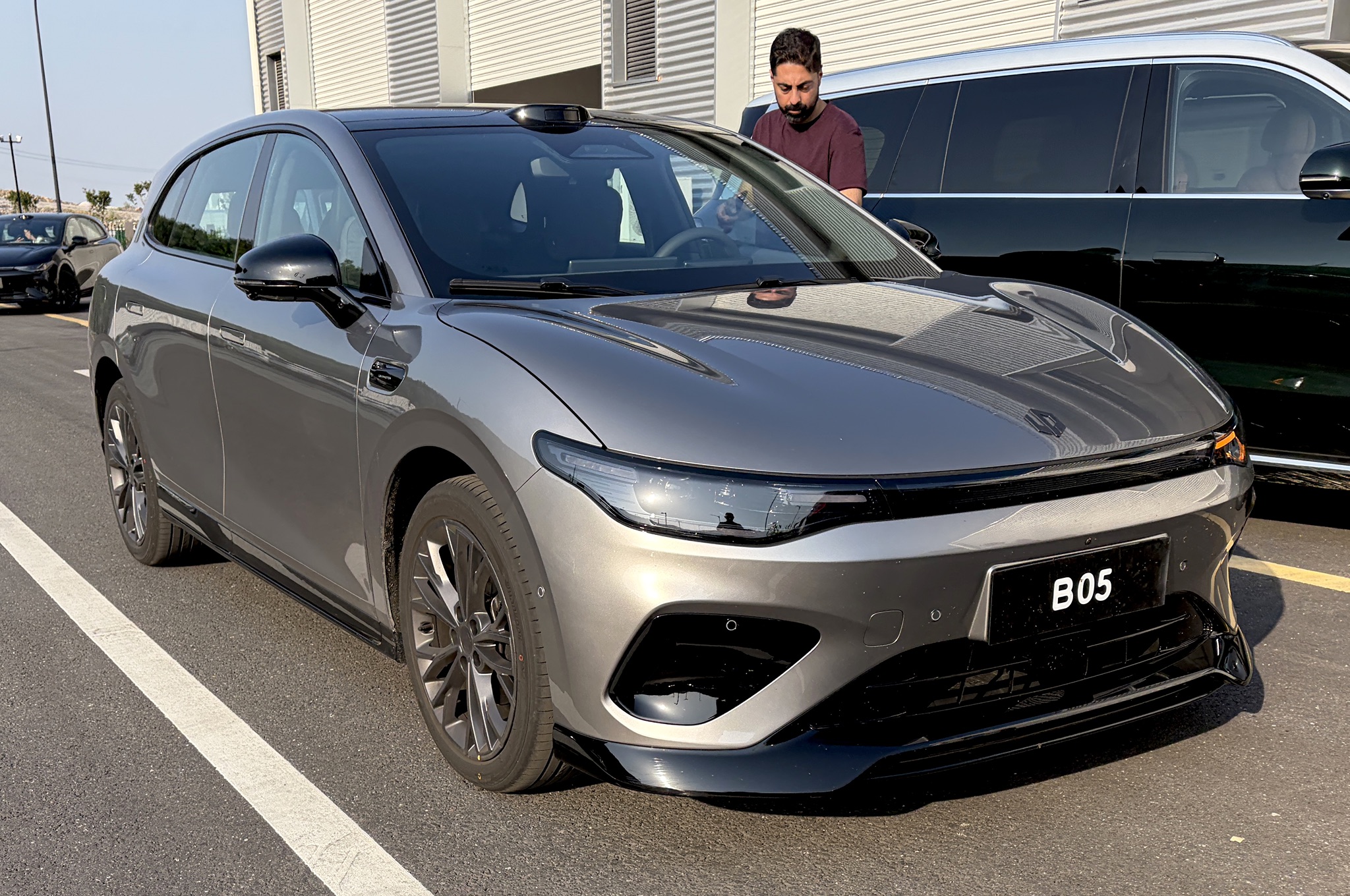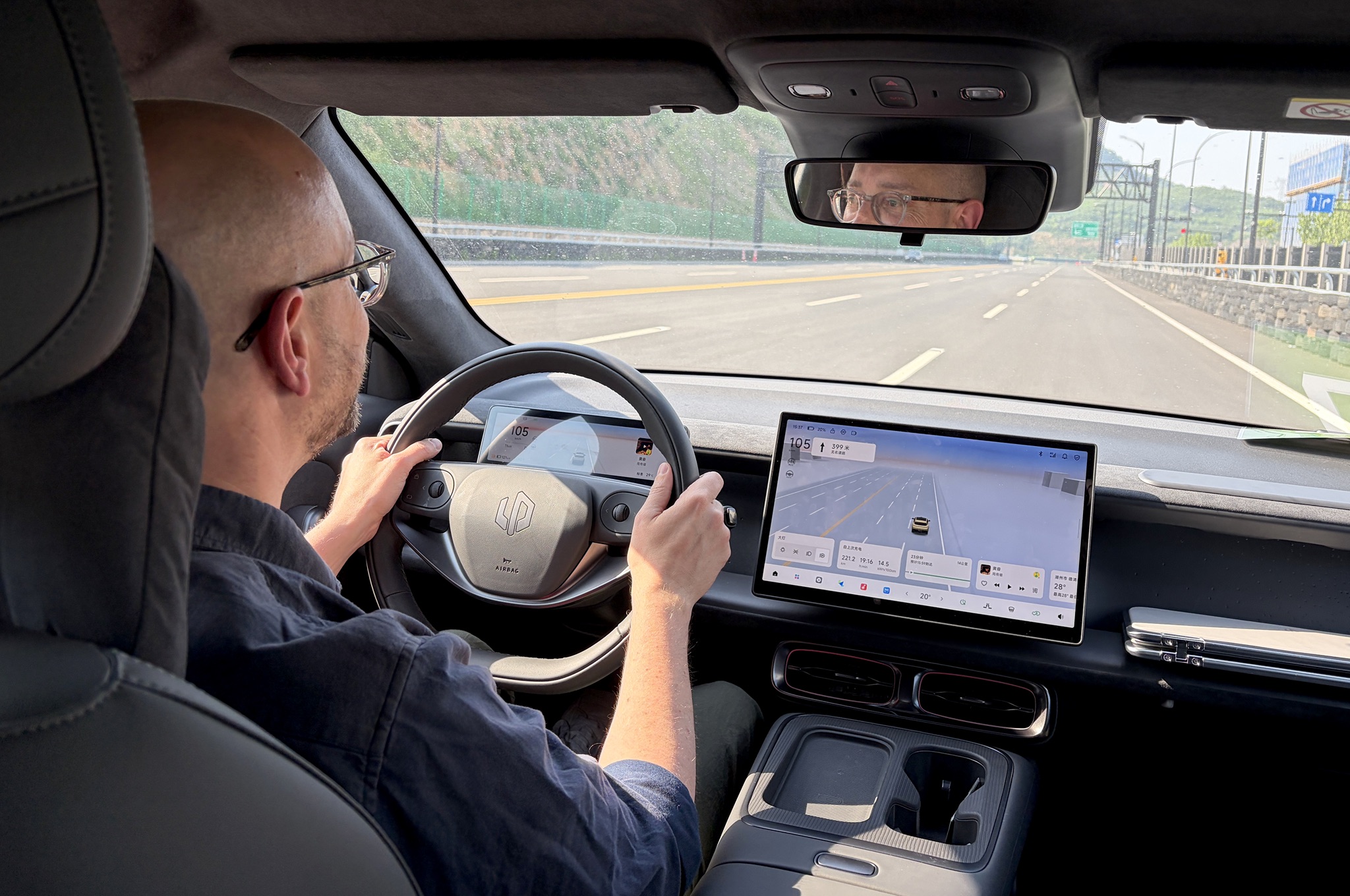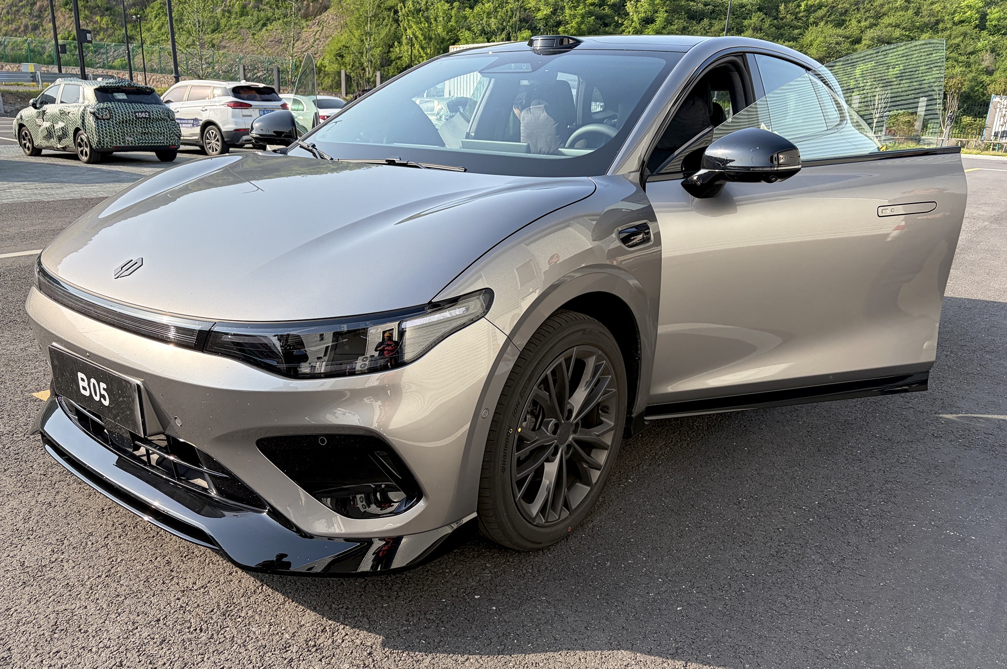 I liked the look of the dashboard with its straight lines that avoid straying into fashionable territory that dates quickly. The Chinese-spec cars we drove had nifty neck pillows and dashboard accessories like a wobbly foldout table or a scampy plastic cat that won’t make it our version but gave the B05 a bit of character.