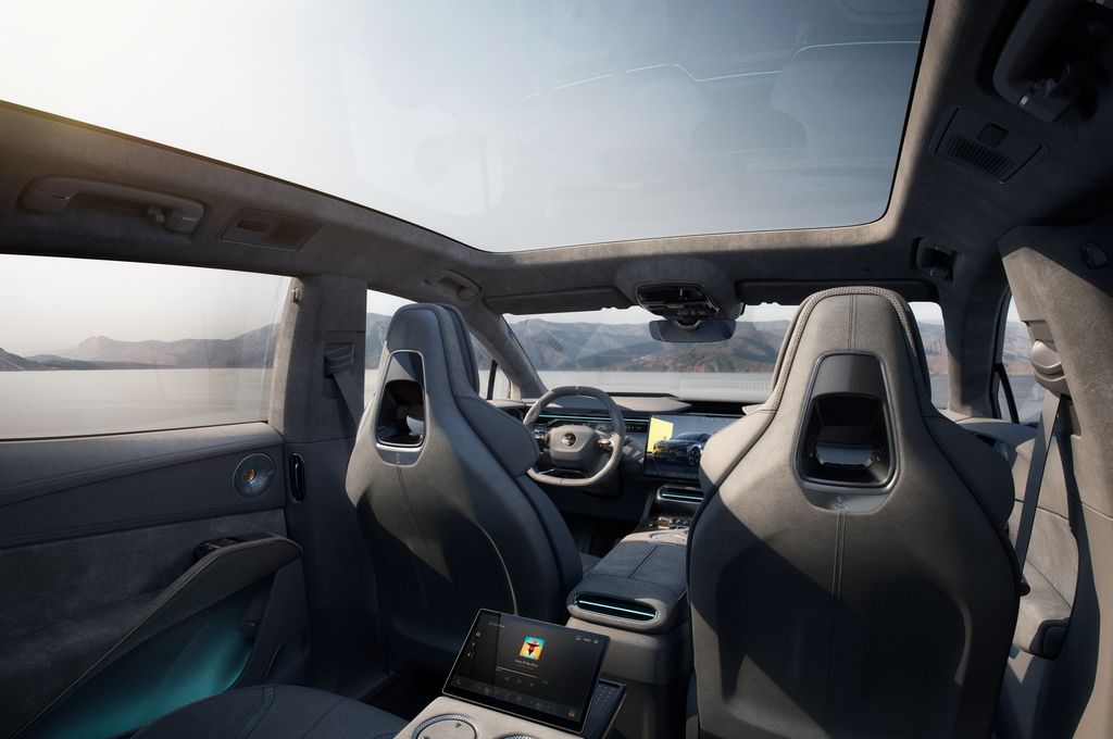 A high-set centre console houses a couple of cup-holders that are revealed when you press down their tops while a phone charging pad sits just below the central air vent. The doors feature deep storage pockets and reinforce the impression that the Eletre was designed to be a practical day-to-day car rather than a weekend play-thing.