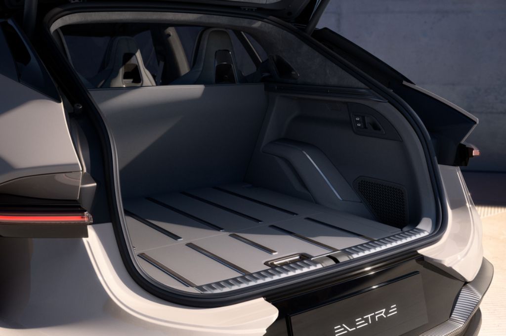 In the rear, customers can choose between a three seater bench or a four-seater layout that features two individual sports seats either side of a large centre console. Thanks to the Eletre’s vast. three metre wheelbase and flat floor, the rear of the car feels remarkably spacious. Our car came with the four-seater layout which offers a genuine first-class passenger experience. The seats come with similar levels of adjustability as those in front and offer exceptional support. The centre console is home to (even more) storage, along with a pop-up infotainment display that allows passengers to alter their seating position, move the front passenger forward and control the climate and audio functions.
