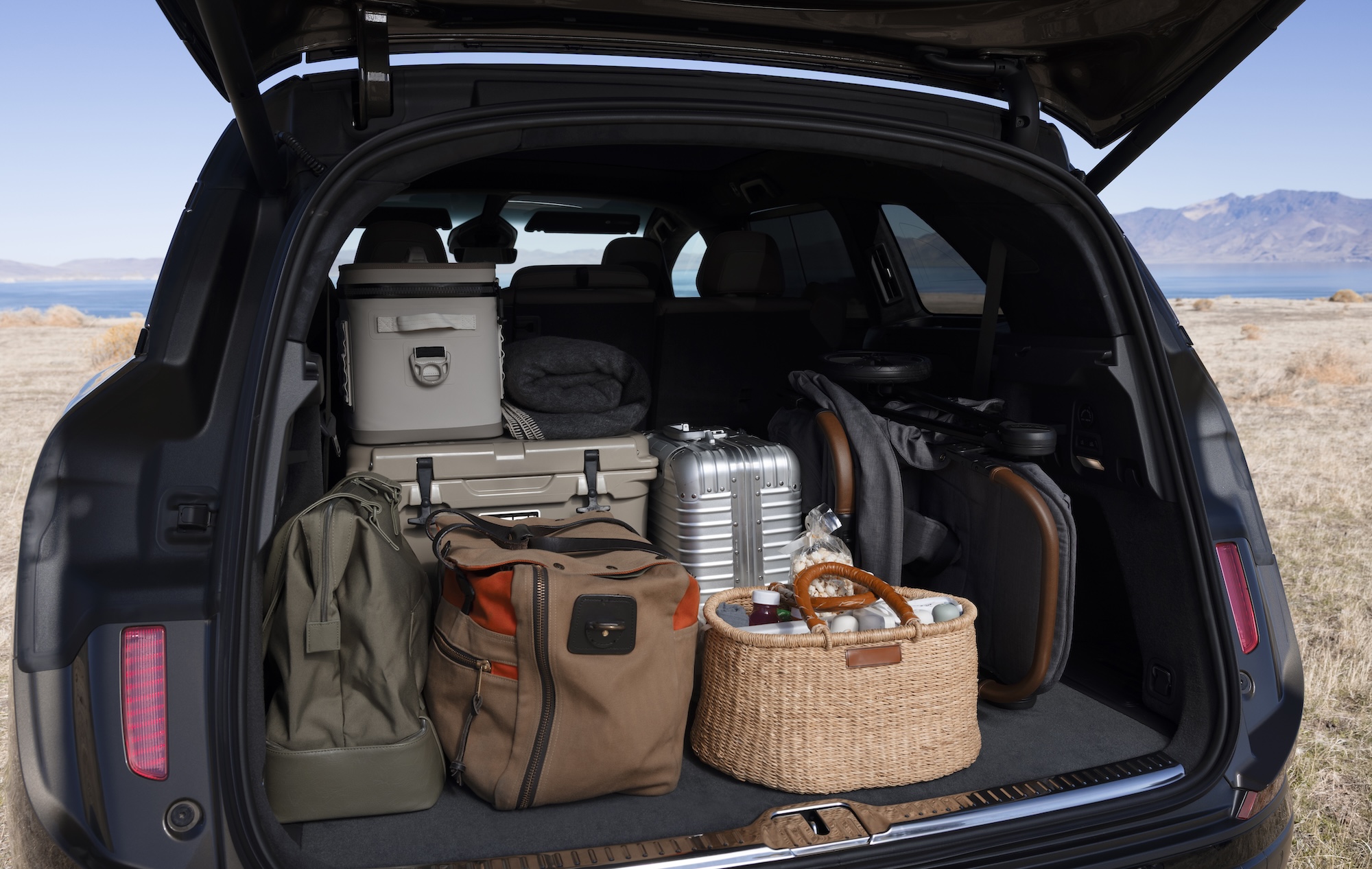 The second row slides to balance legroom between the second and third rows, and in the rear-most row there's room for adults, not the "kids only" perches found in some rivals. Both rear rows fold flat to create a huge load bay for bulky kit like bikes or surfboards, and there are fold-out tables integrated into the backs of the second-row seats. Then there’s the frunk: Lucid says it’s massive, and even usable as a seat for a couple of people when parked.