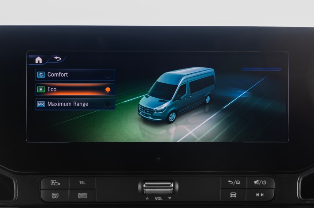 In order to preserve range, the heating system uses a heat pump, heated seats and active thermal management, while driver assistance and safety features include Active Brake Assist, Active Lane Keeping Assist, Blind Spot Assist, ATTENTION ASSIST drowsiness warning, Intelligent Speed Assist with cruise control, Mercedes-Benz emergency call system, an anti-theft protection package with a double-lock system and on panel van models, a reversing camera.
