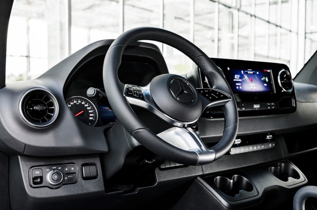 With the latest eSprinter, the cabin isn’t massively different from before – but that’s no bad thing at all. Visually the model is identical to its predecessor, and aside from an updated MBUX touchscreen interface, which now integrates with smartphone mirroring via Bluetooth, the cabin remains largely unchanged. It’s still one of the smartest in the class.