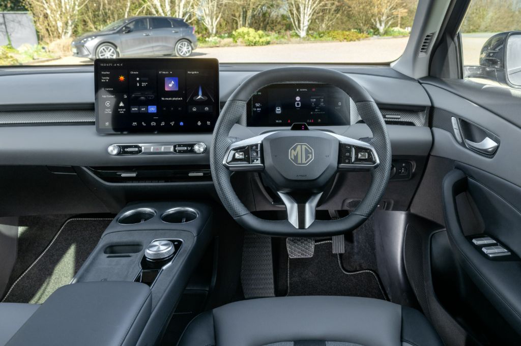 There’s still a lot of screenage, of course. A 12.8-inch central touchscreen has all the usual features, and finally MG has managed to fit wireless Apple CarPlay!! It was so annoying in the MG4 and MG Cyberster that you had to use a cable, and then quite often the USB port would play up and CarPlay would keep disconnecting. Thankfully, MG’s caught up with its competition and has now made it wireless.