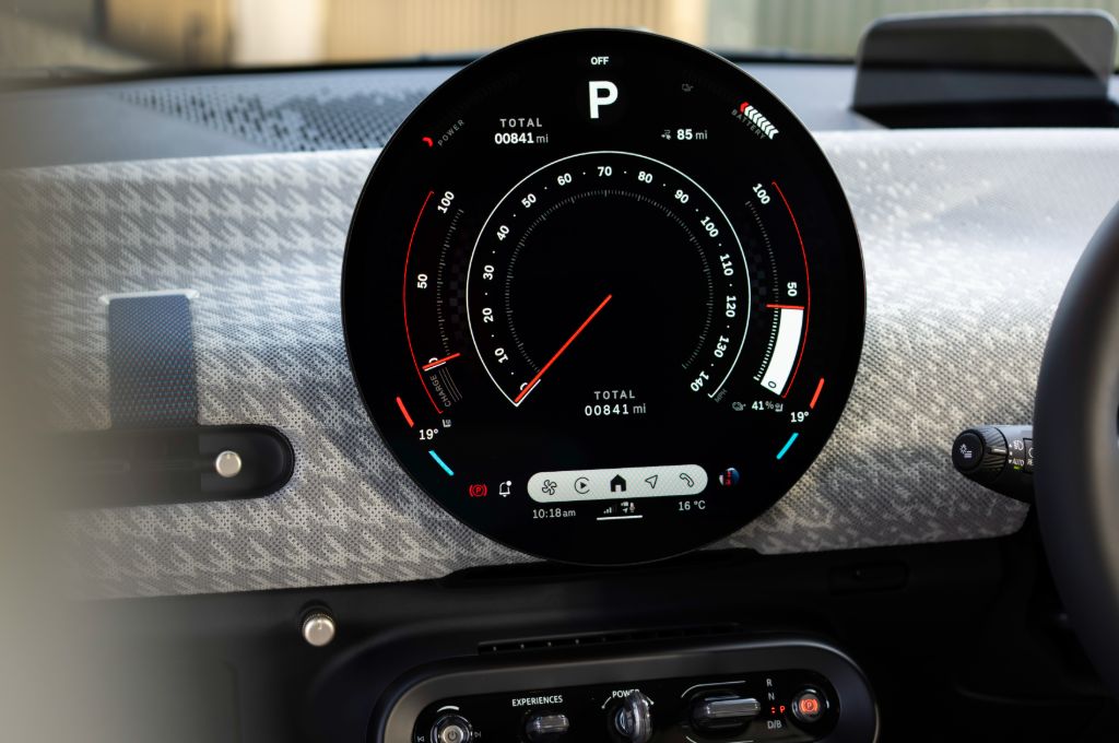 For a start, the big, round OLED infotainment touchscreen in the centre of the dash is a classic MINI feature. The system can be personalised, just like your phone screen, so that you can have a picture of your loved ones, or even a recreation of a dial from an original 1959 Mini. There’s also a variety of synthesised engine noises that the car makes to enhance the driving experience, which change depending on what drive mode it’s in. The one in ‘timeless mode’ is based on the engine noise of a 1974 Mini, with a bit of digital fettling, although I have to say it didn’t sound terribly ‘original Mini’ to me… Still a fun feature that you can enjoy playing about with, though.