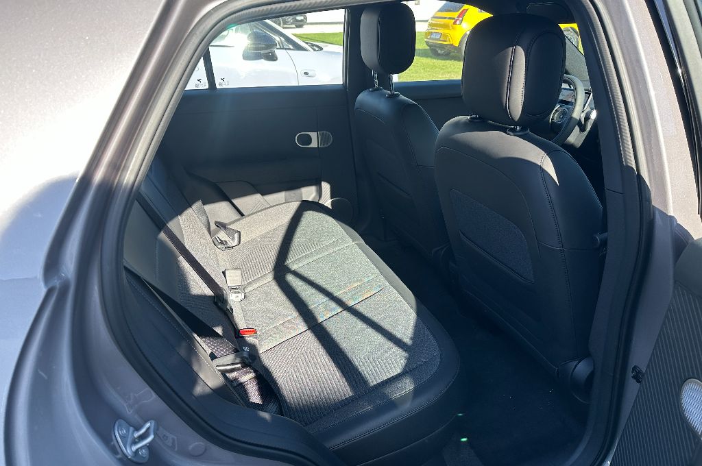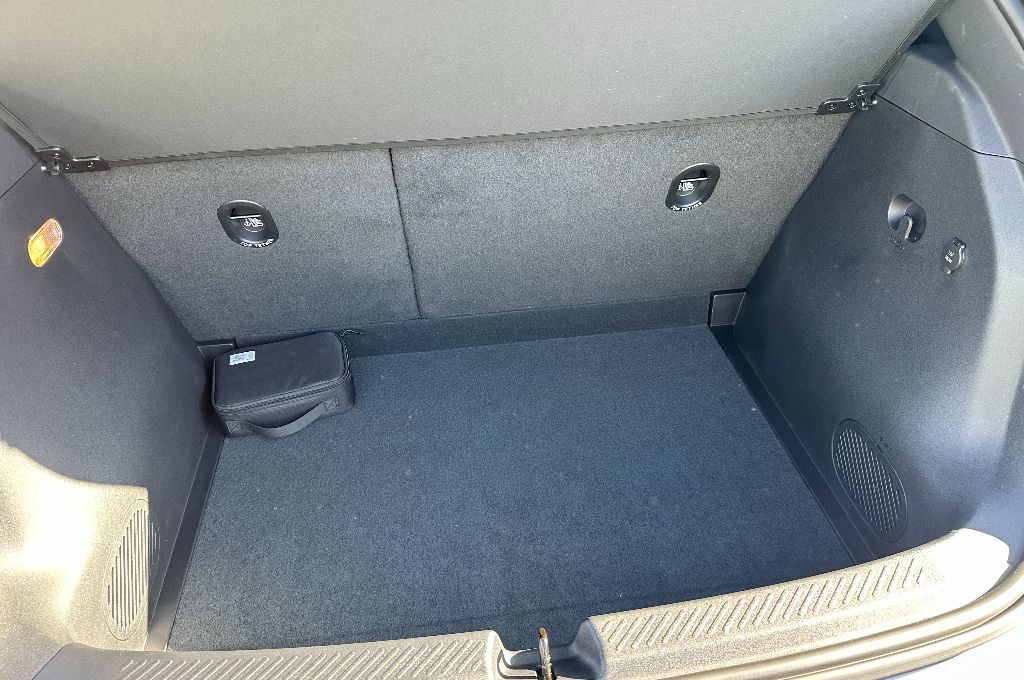 Rear passenger space is okay by these class standards, and you can squeeze three across the rear bench if you need to. There’s not a huge amount of legroom, but there’s enough space for an average-sized adult to be comfortable for the average journey. I’d say it’s a touch roomier back there than it is in the Renault 5 and Mini Cooper, although I’d say the Hyundai Inster and BYD Dolphin are a bit comfier for rear passengers.