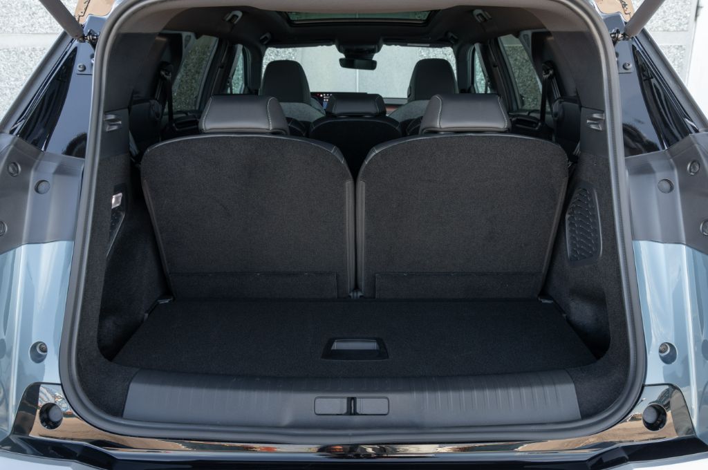 It's really not bad back there, either. I’m a very average 5ft 7”, and I can sit comfortably in the third row behind another average-sized adult. Your knees feel raised, as the floor is quite high, and there are no air-con vents back there or USB chargers – just a couple of very tiny cupholders, armrests and a 12V charger. While that’s annoying, especially the air-con, these rearmost seats will be brilliant for kids, and are pretty comfortable and accommodating by class standards; usefully roomier than those in the Mercedes EQB, and you need the Kia EV9 to get much more space and comfort in the third row, but then you’ll need £15,000 or so extra for that, too.